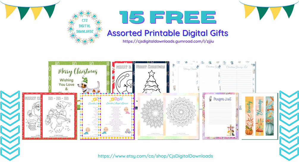 Cj's Digital Downloads Free Bundle of 15 Assorted Printables